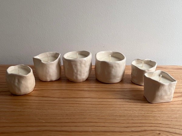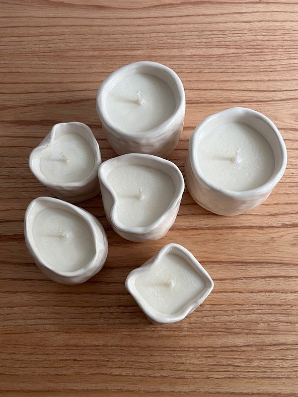 Vela de cera de soja realizada artesanalmente en cuenco cerámico